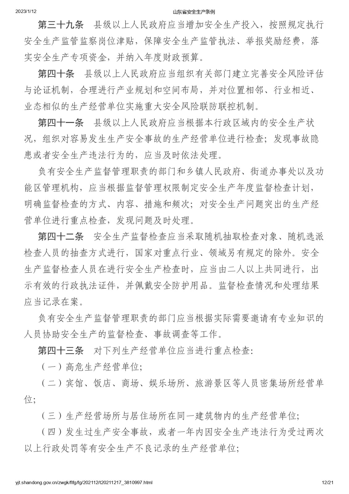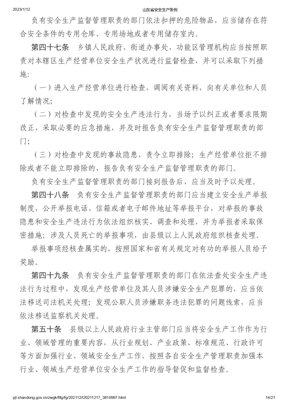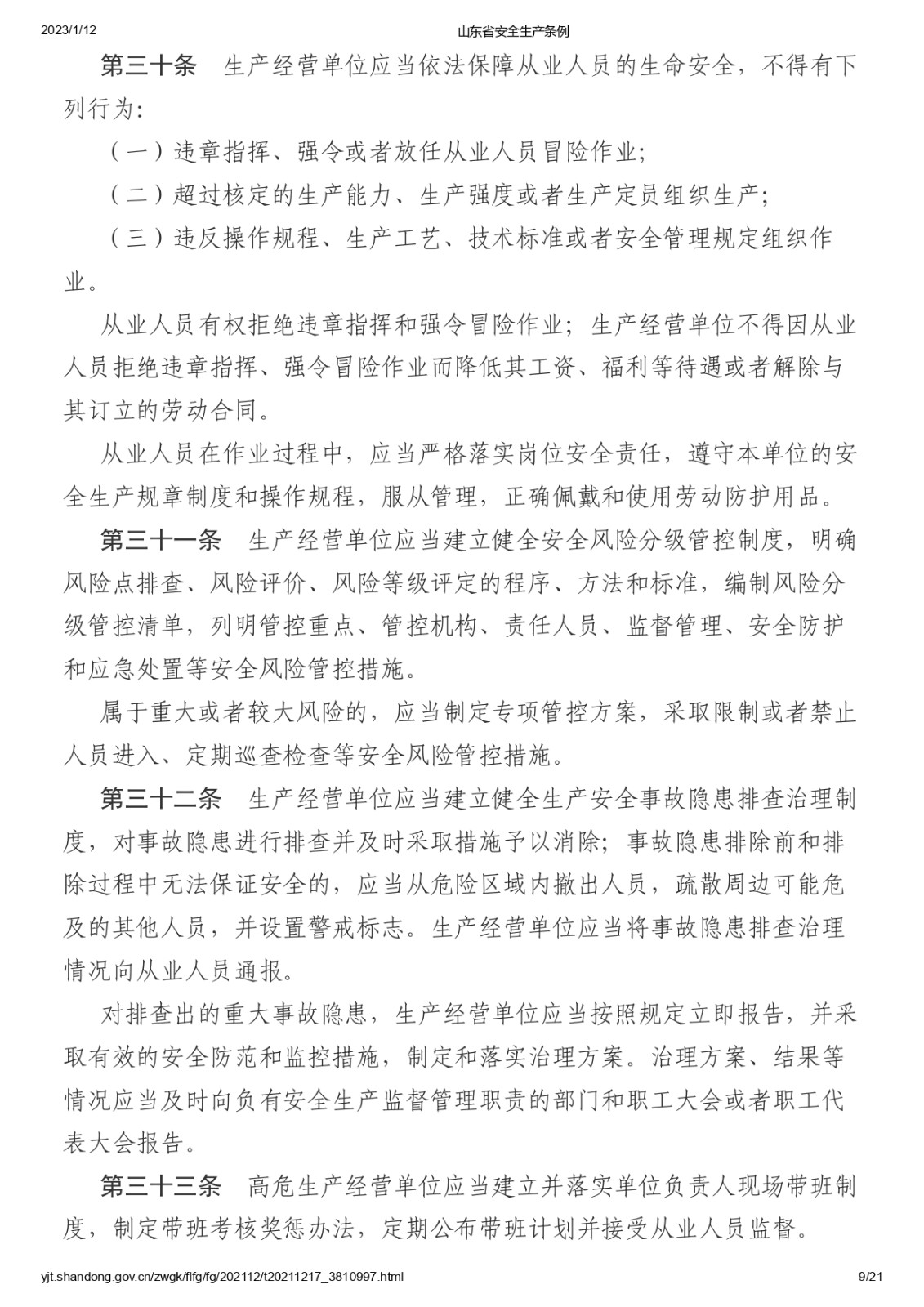 山東省安全生產條例
