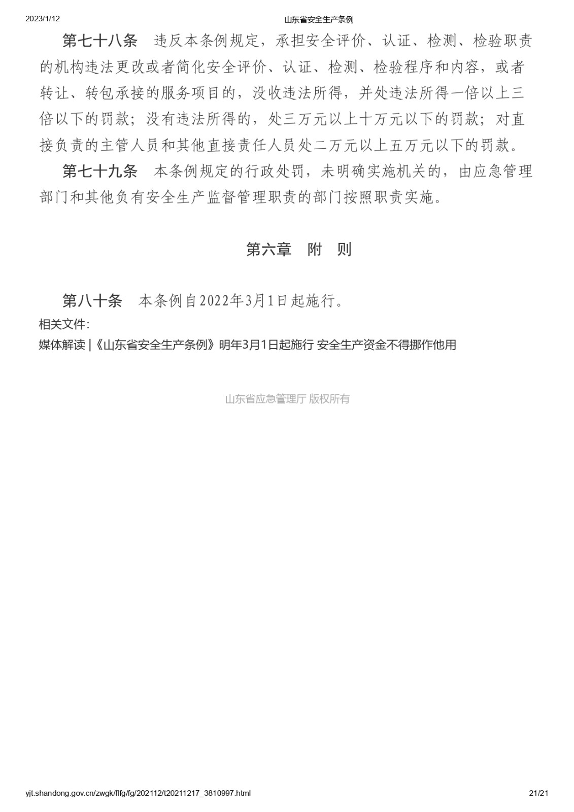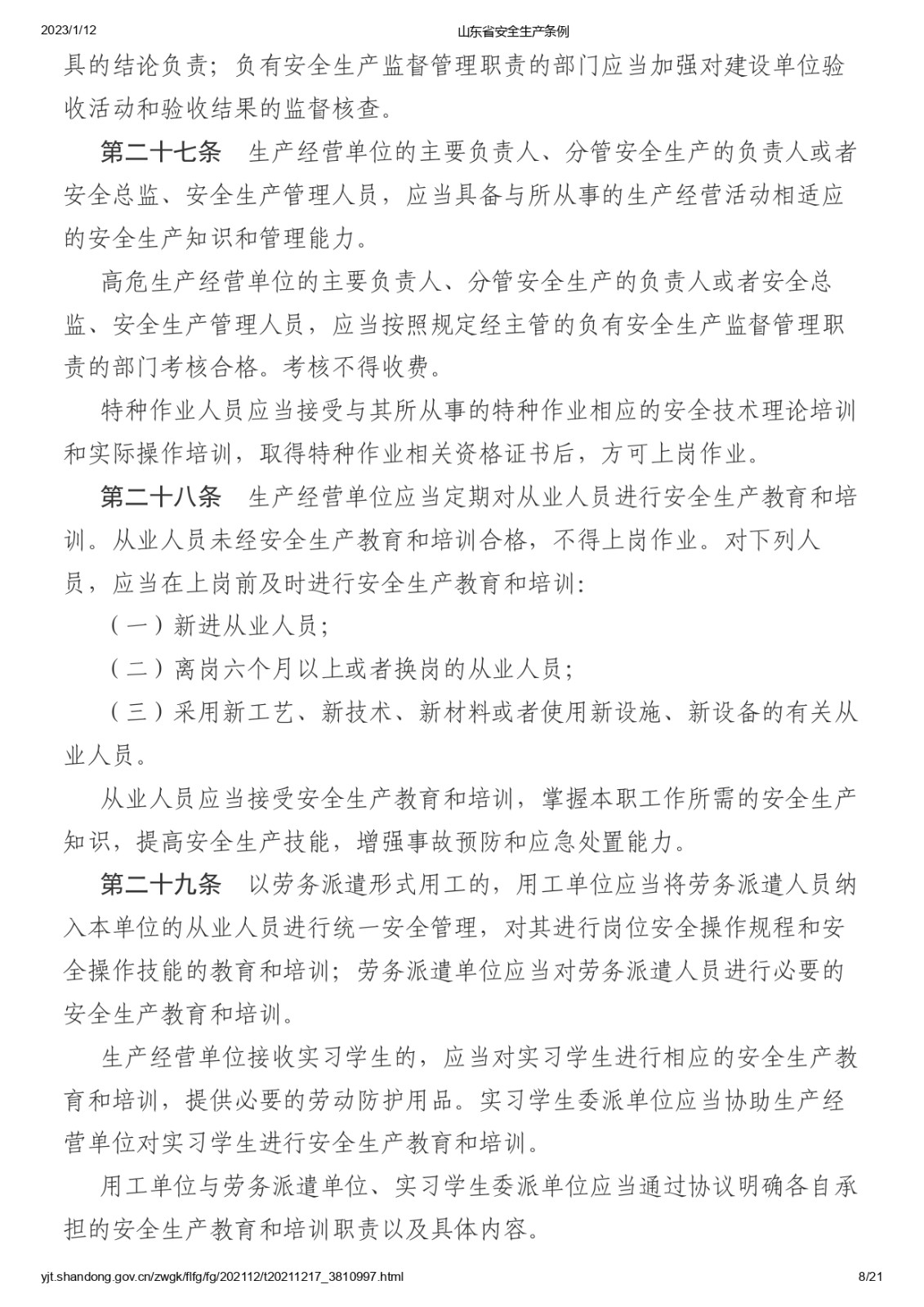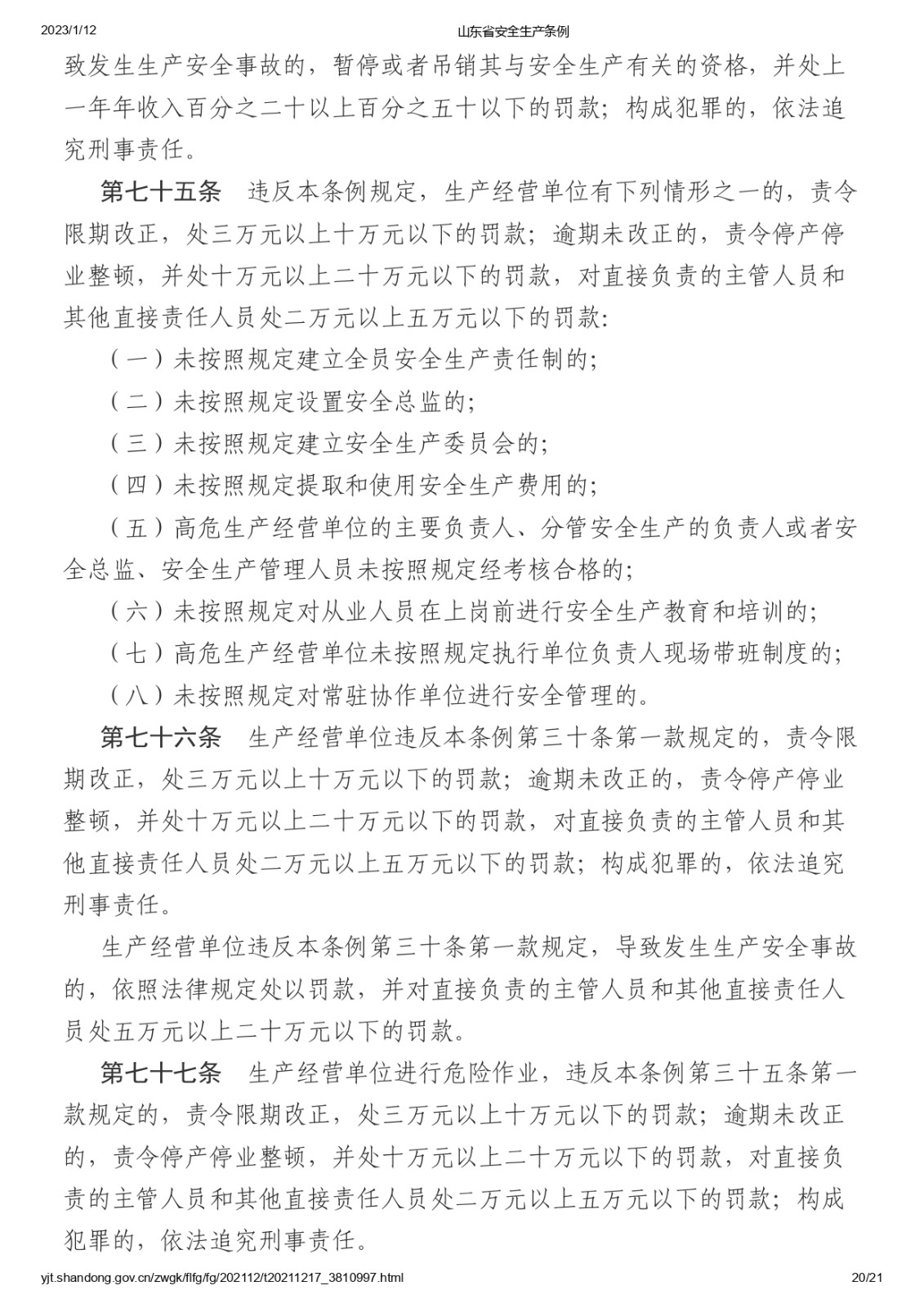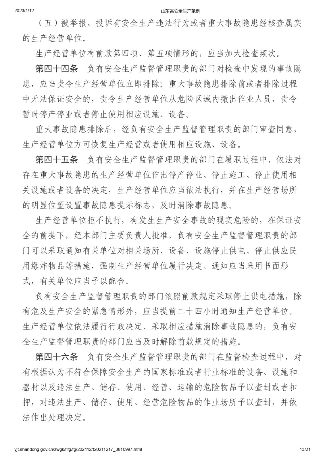 山東省安全生產條例